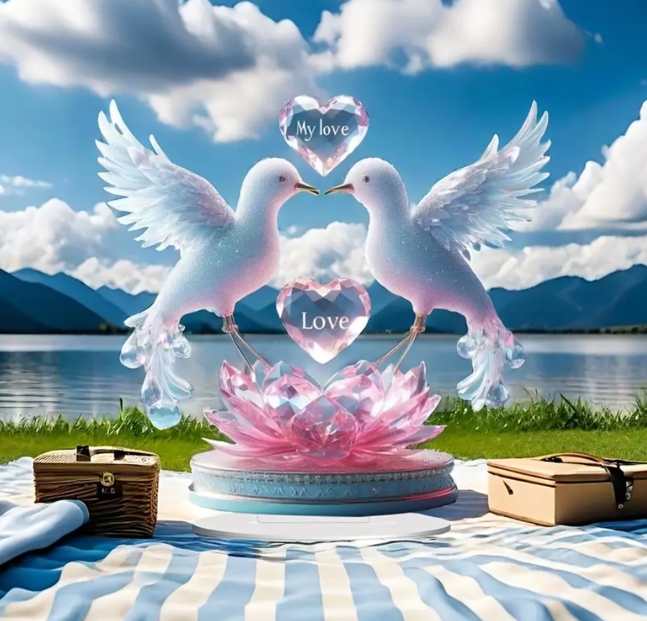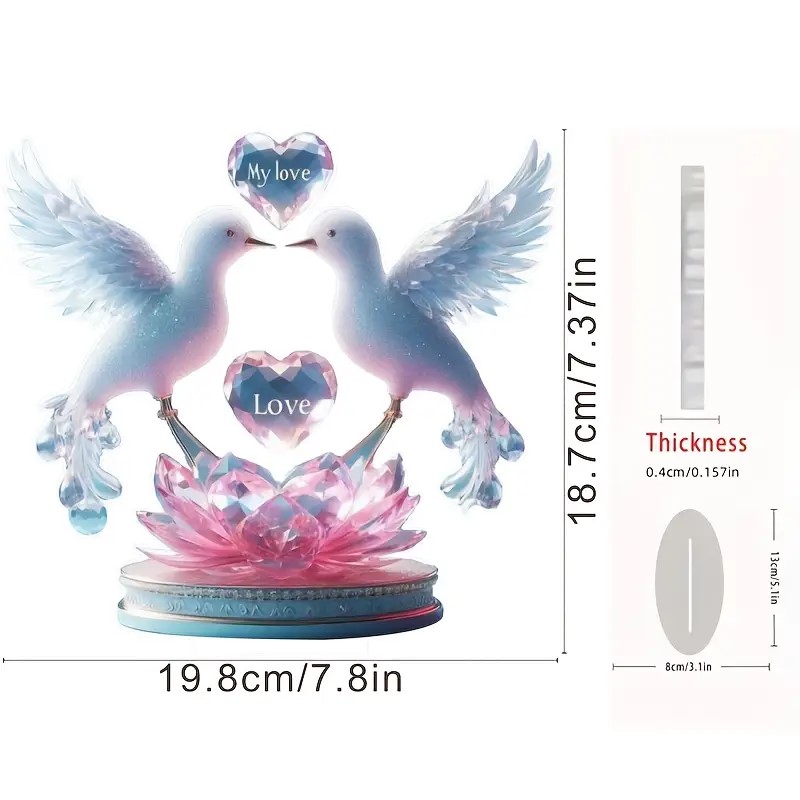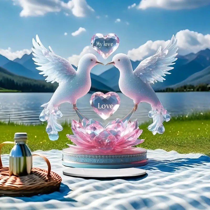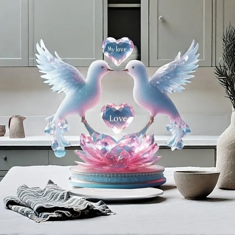 2D Romantic Love Birds on Lotus Flower Tabletop
