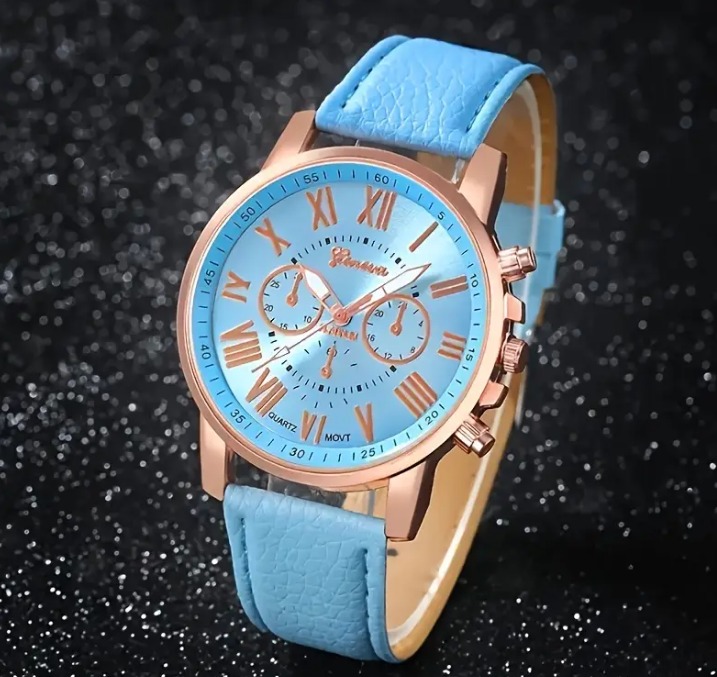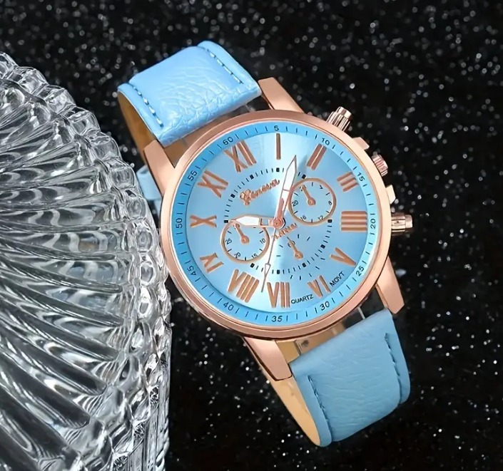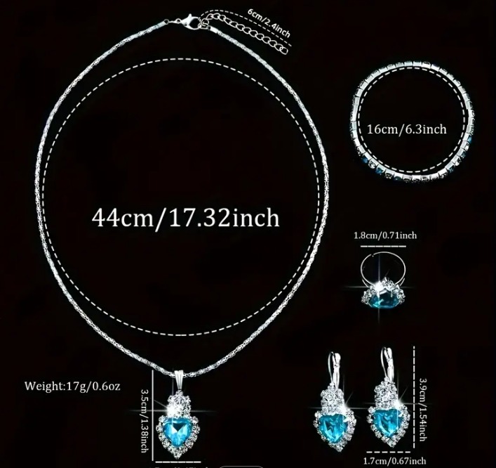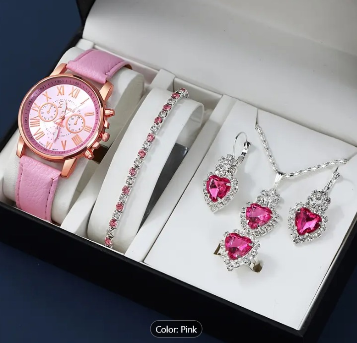 Elegant Quartz Wrist Watch and Jewelry Set with Shock-Resistant Round Analog-Digital Display, PU Leather Band, Zinc Alloy Case - Non-, Heart-Shaped Blue Accessory Combination for Women - Ideal for Mother'S Day, Valentine'S Day, and Easter Gifts